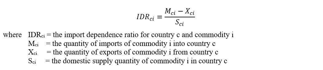 - Import dependence ratio, which is the share of net imports of each staple food in total domestic food consumption of the commodity.